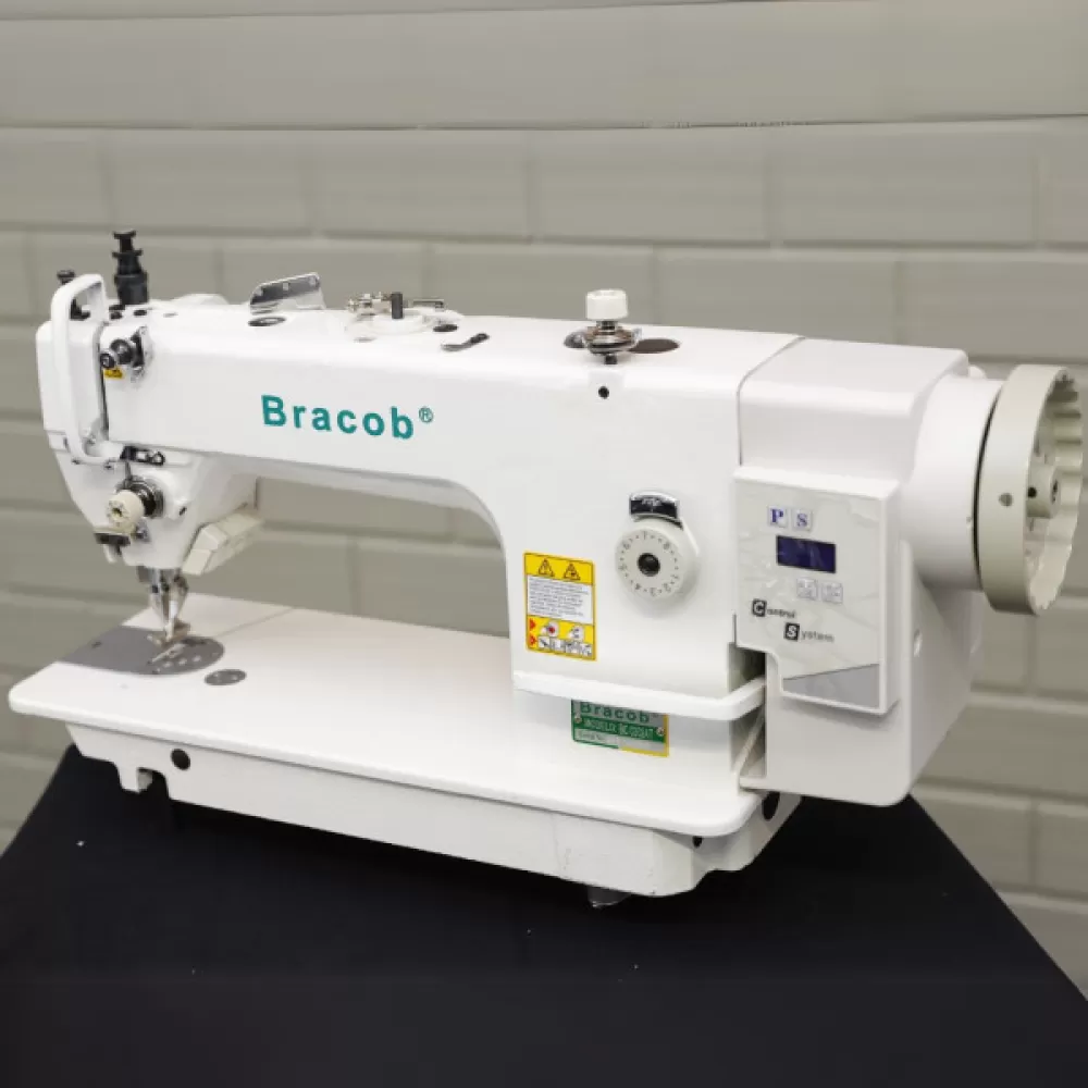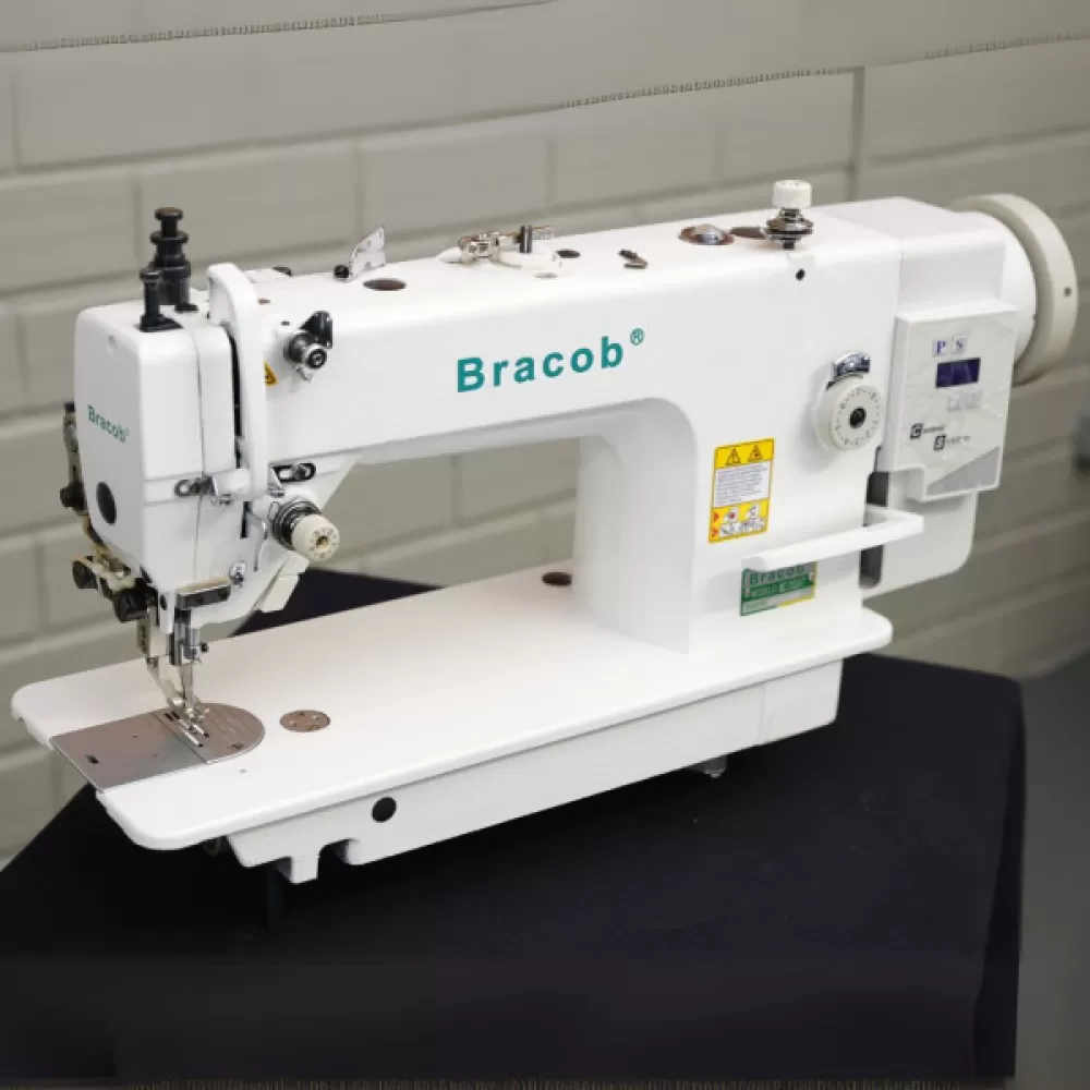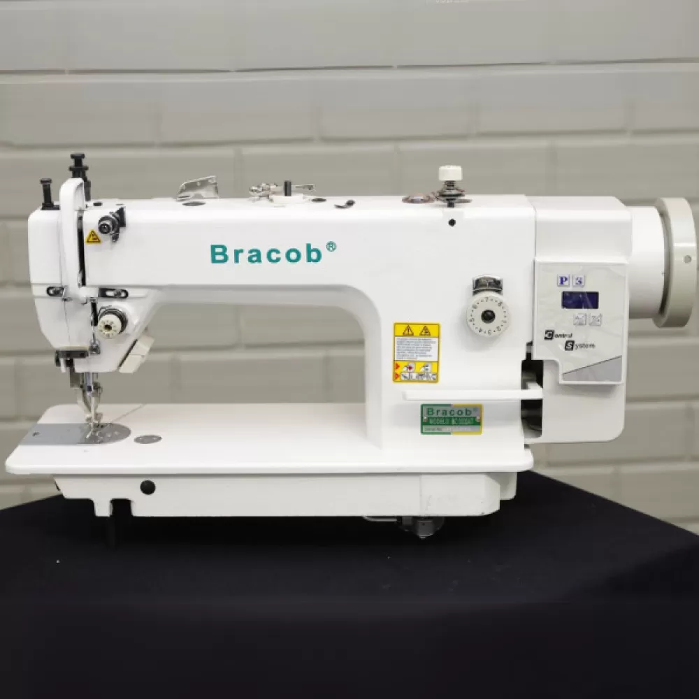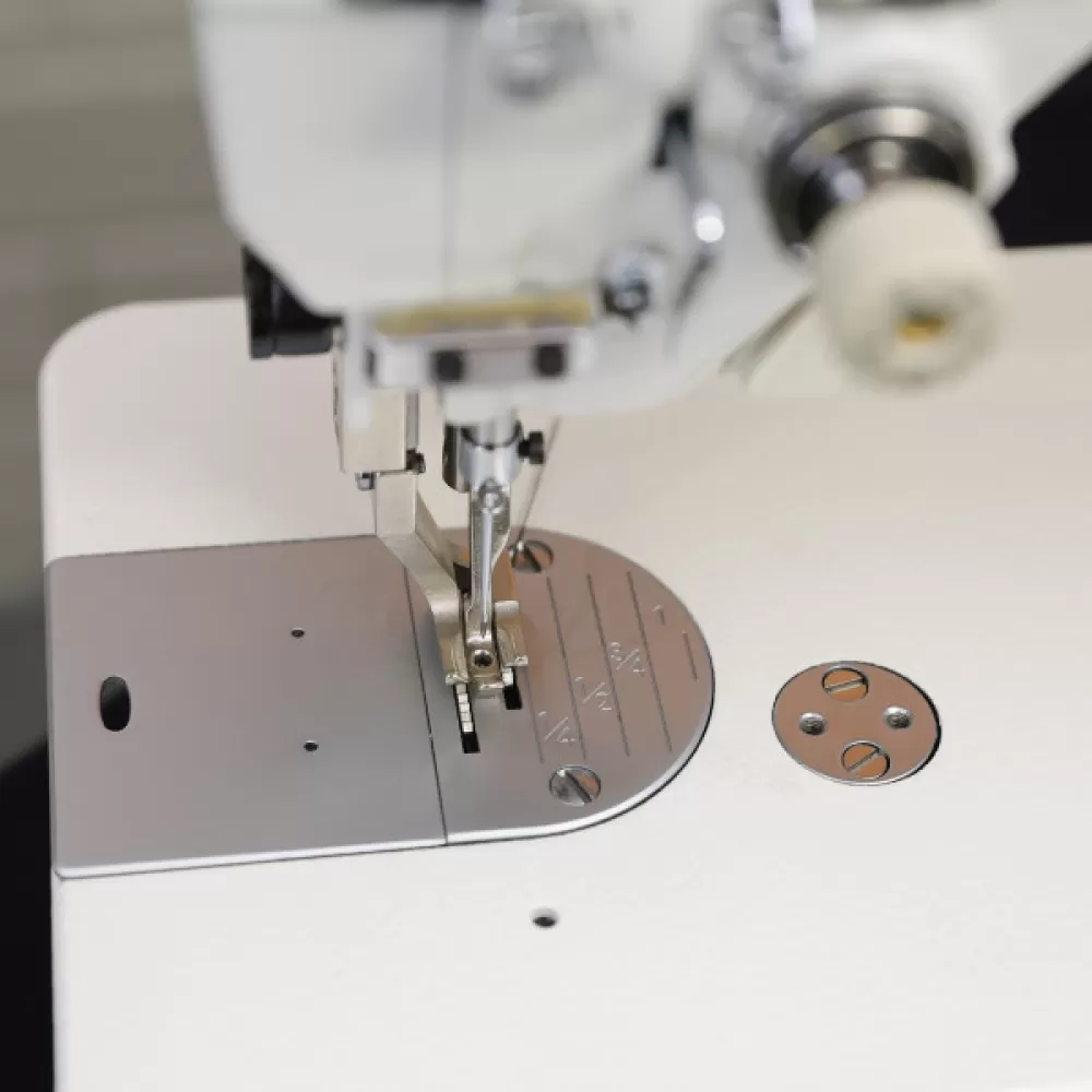 Máquina de costura industrial reta com transporte duplo (dente e calcador) direct drive. Aplicação para tecidos pesados (estofaria, jeans, etc).
