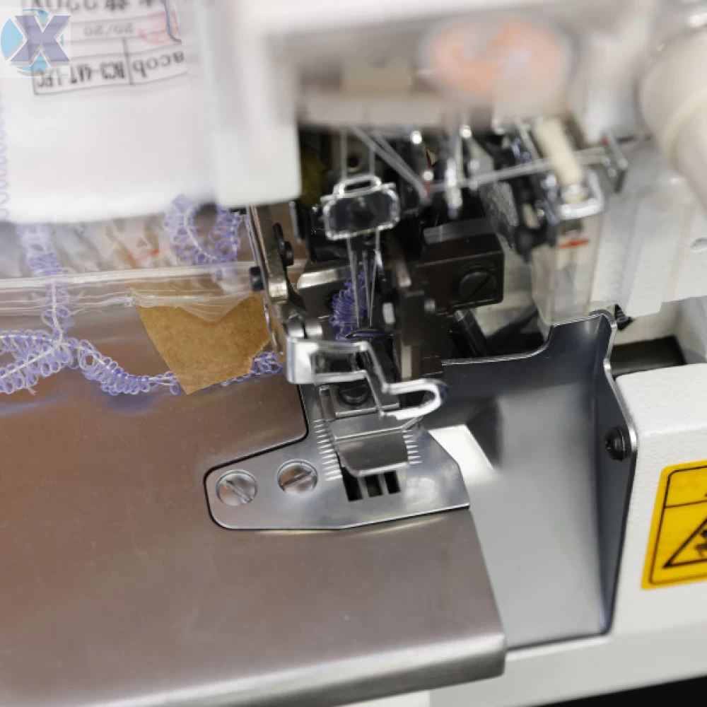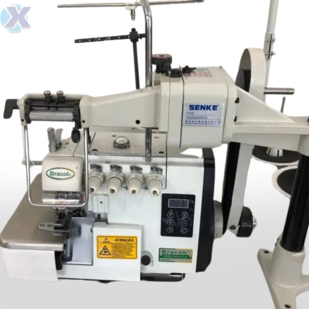 Máquina de costura industrial overlock ponto conjugado direct drive com aparelho zeromax aplicador de elástico. Aplicação: Em roupas cirúrgicas, roupas para uso em frigorífico, malhas, tecidos, etc.
