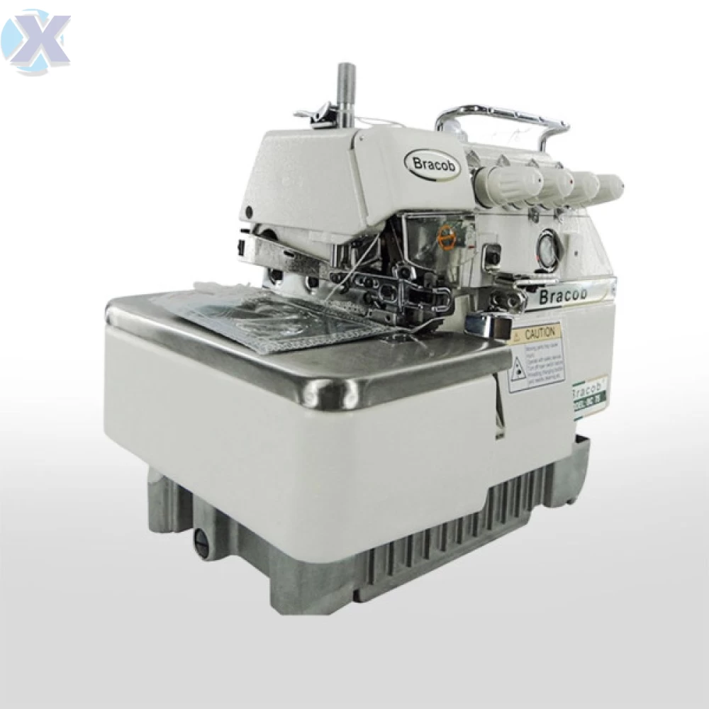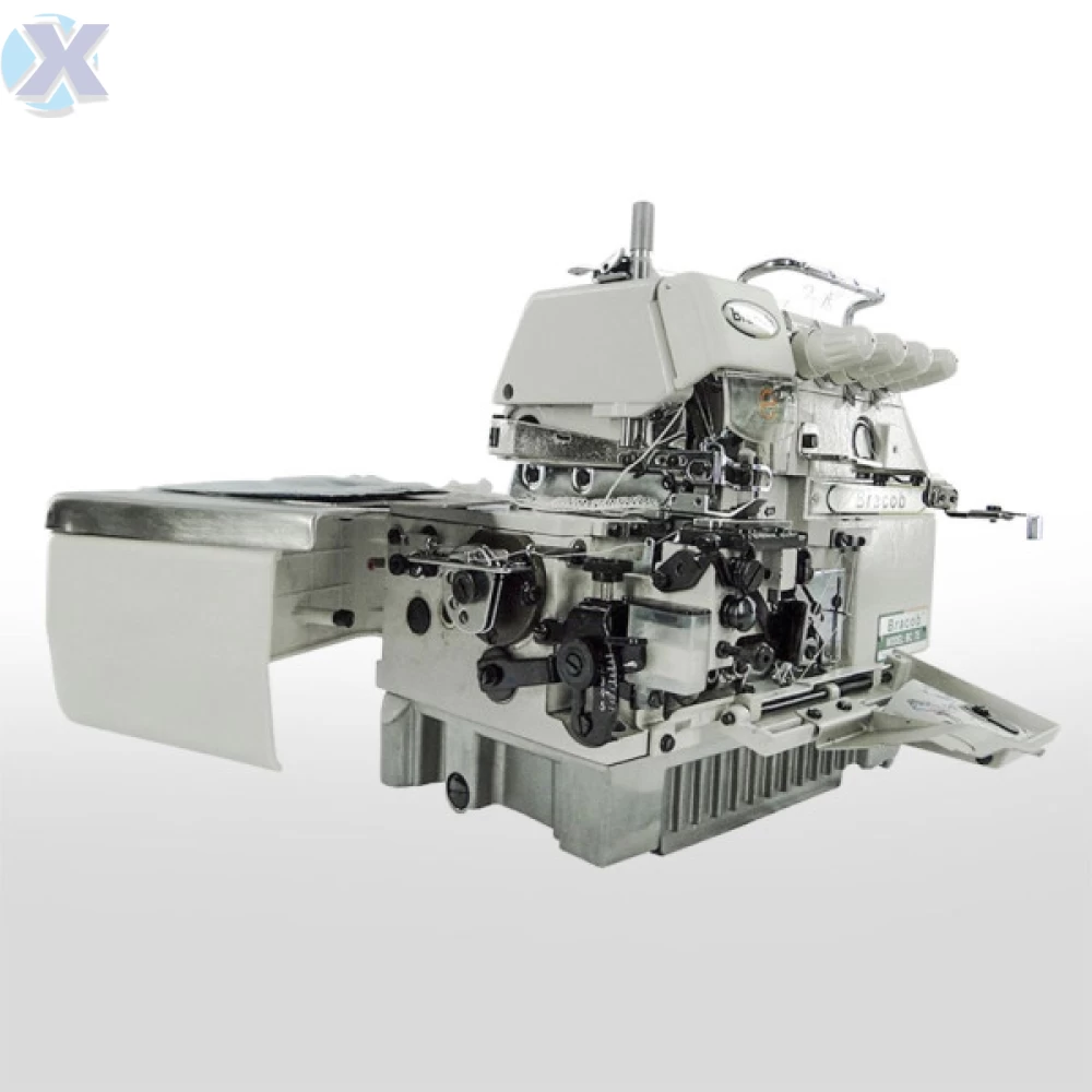 Máquina de costura industrial overlock para tecidos médios. Aplicação para pré-costura, aplicar elástico e viés.