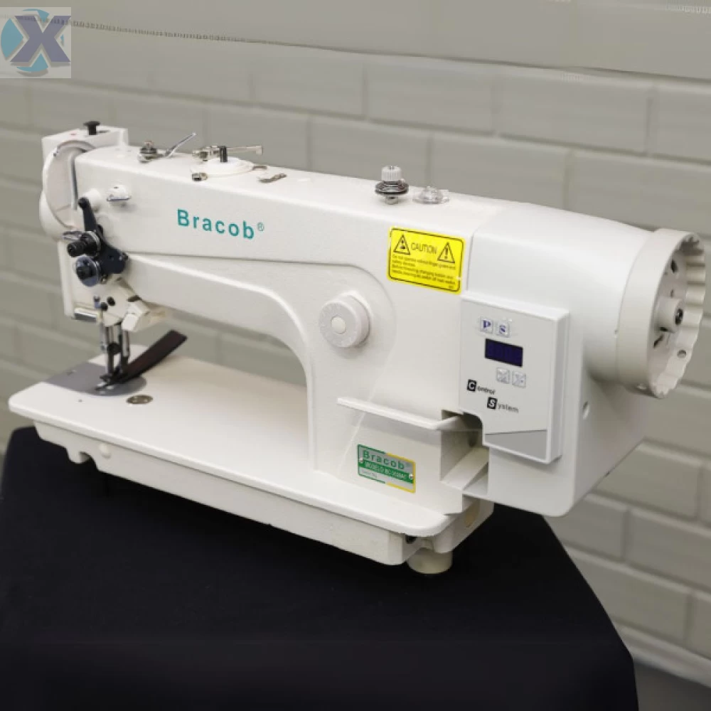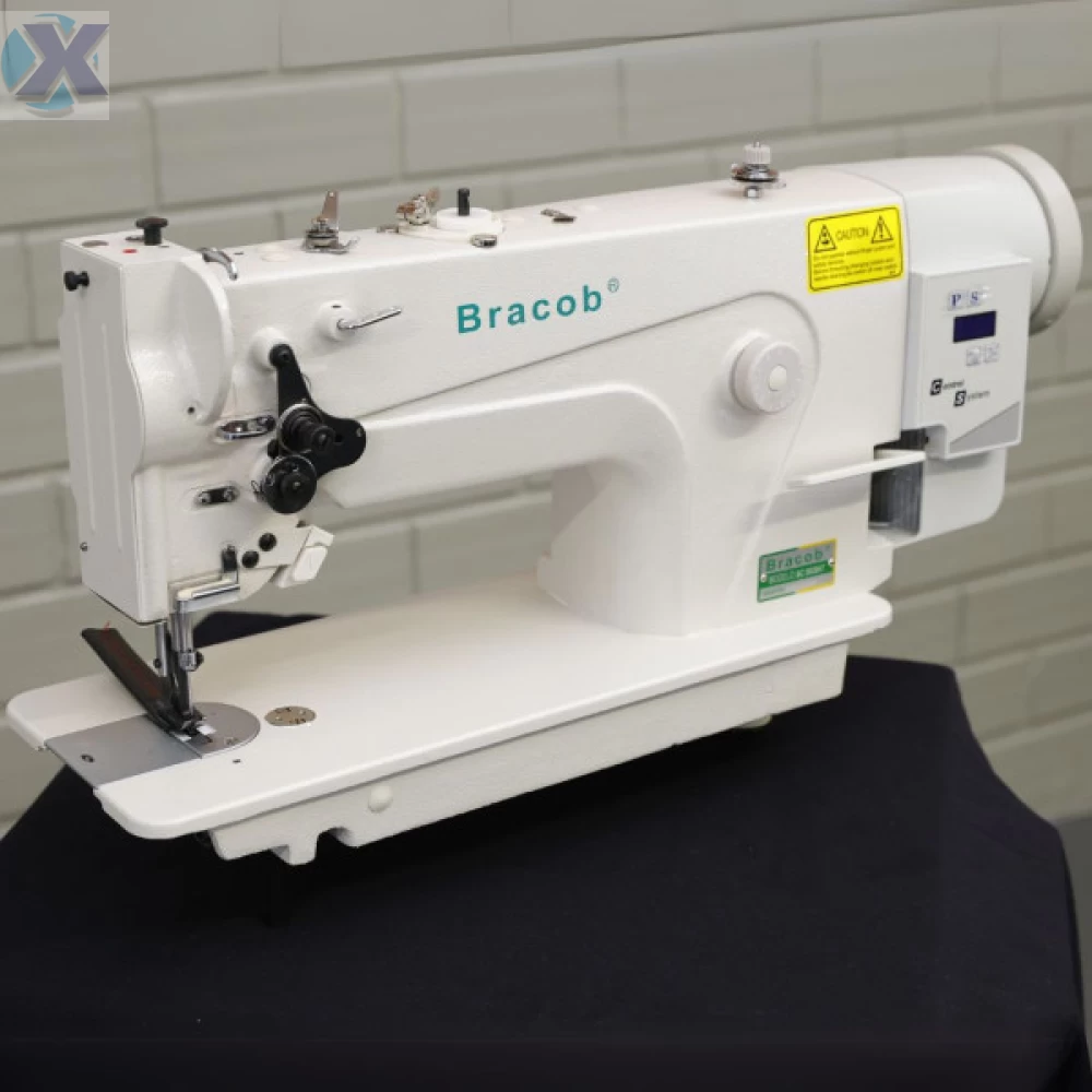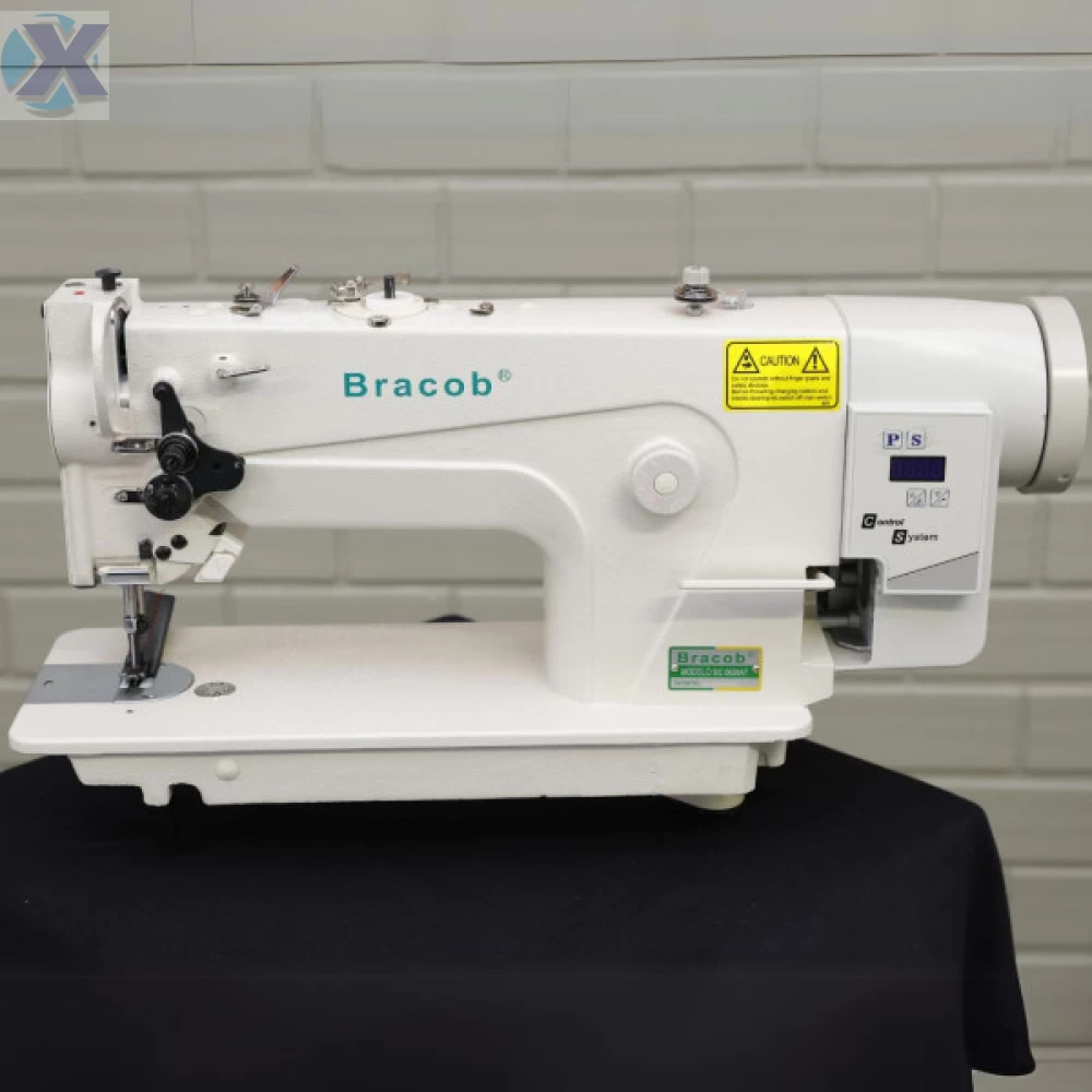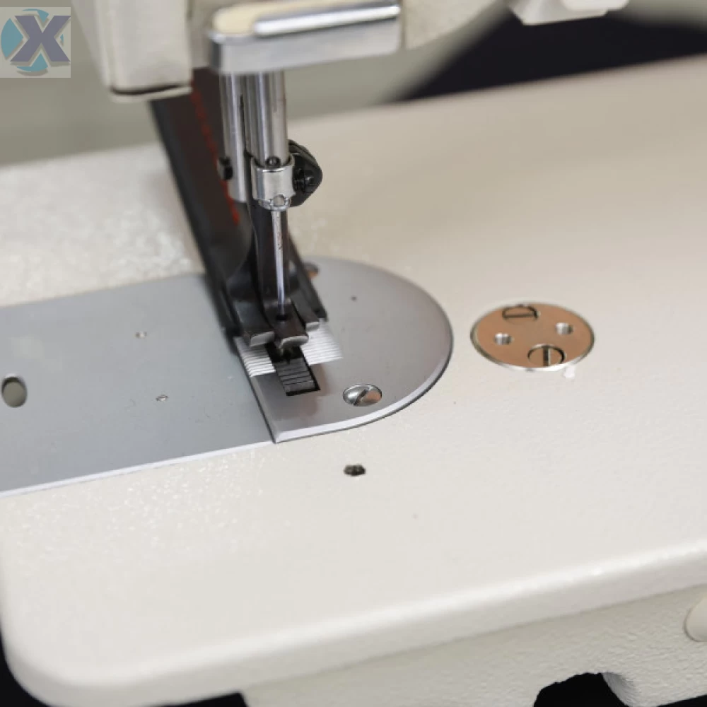 Máquina de costura industrial reta com transporte triplo, direct drive (dente inferior, dente superior e agulha)